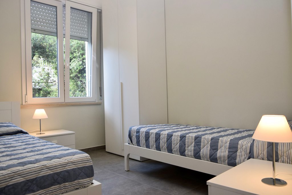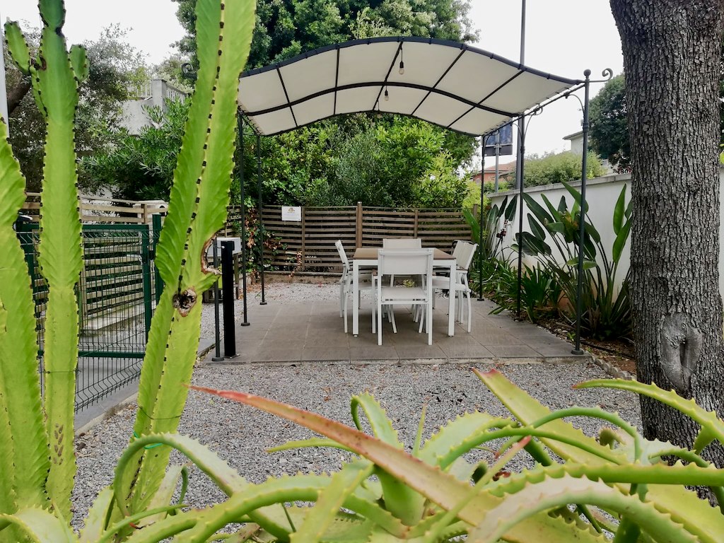 Nuovissimo trilocale 5-6 posti letto, in palazzina composta di due appartamenti, a pochi passi dalla spiaggia.La sistemazione é stata oggetto di totale ristrutturazione e offre ampia zona giorno con cucina attrezzata e divano letto, balcone con tavolo da colazione, camera matrimoniale con terzo letto, camerina con due letti singoli, bagno con box doccia, area esterna privata recintata con gazebo, tavolo e barbecue.Ottimamente arredato, l’appartamento é dotato di fornelli a induzione, forno elettrico, frigo con congelatore, lavastoviglie, lavatrice, tv, wi-fi, aria condizionata e phon.Posto auto privato.Incluso nella locazione un completo spiaggia presso lo stabilimento balneare La Lanterna a 150 metri.La distanza dal centro e dai servizi é di 500 metri.Questa è una soluzione Pet friendly: cortesemente Vi preghiamo di essere rispettosi degli arredi, di volervi dotare di teli divano se il vostro cane é abituato a salirvi, lasciare pulito il giardino e non arrecare disturbo ai vicini.
