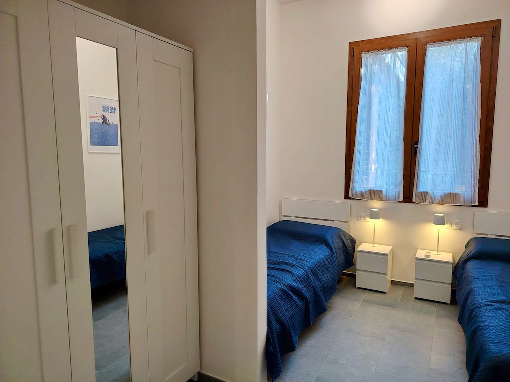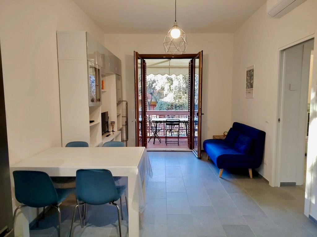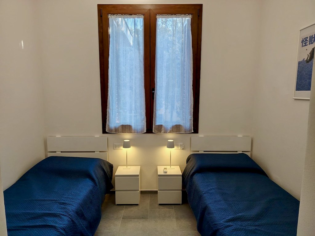 Appartamento completamente ristrutturato situato all'interno del complesso residenziale Euroturist, a pochissimi passi dalla spiaggia privata e inclusa. Ubicato al piano 2° con scala esterna di accesso, offre zona giorno con angolo cottura, divano letto singolo, terrazza con tavolo da pranzo, camera con letto alla francese 140x 200 cm , camerina con due letti singoli, bagno finestrato con doccia. Dotato di aria condizionata, wifi fornelli a induzione, frigo con congelatore, lavastoviglie, lavatrice, pilozzino esterno, tv, microonde, posto auto H2. Servizio spiaggia con ombrellone e lettini incluso nella locazione.Posizione ottima per il mare, distanza dal centro circa 1 km. Questa è una soluzione Pet friendly: cortesemente Vi preghiamo di essere rispettosi degli arredi, di volervi dotare di teli divano se il vostro cane é abituato a salirvi, lasciare pulito il giardino e non arrecare disturbo ai vicini.