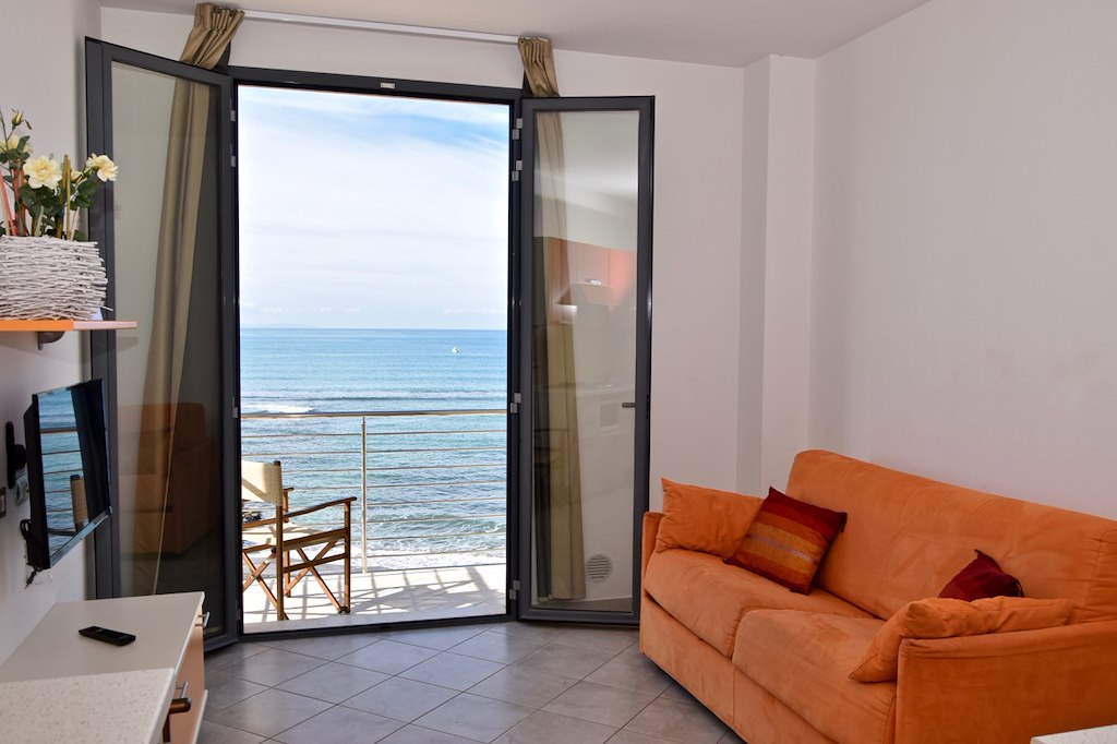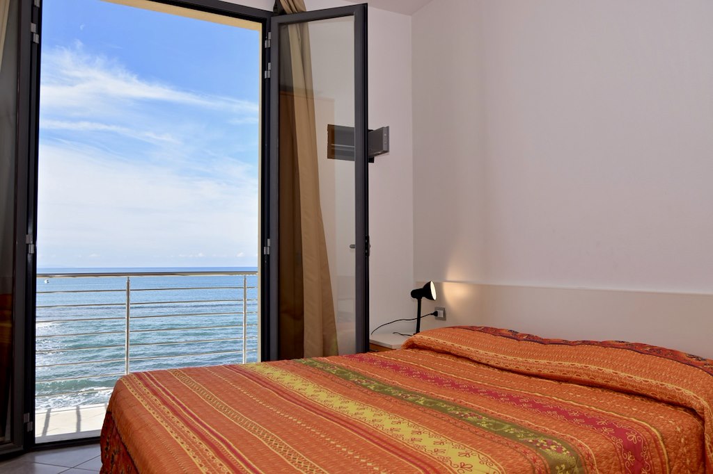 Residence Mediterraneo, in riva al mare nella tranquilla zona residenziale di San Vincenzo a 200 metri dal centro e dai principali servizi e ristoranti, offre accoglienti e confortevoli appartamenti: monolocali con angolo cottura, per 3 persone (divano letto matrimoniale e poltrona letto singola, bagno con doccia), oppure bilocali per 5 persone (zona giorno-cottura con divano letto matrimoniale, camera matrimoniale con terzo letto, bagno con doccia) ben arredati e dotati di ogni comfort.Zona cottura perfettamente attrezzata: lavastoviglie, microonde, frigorifero con cella frizeer, aria climatizzata, TV al plasma con impianto per la visione di canali anche stranieri, connessione internet wi-fi, cassaforte. A disposizione degli ospiti la lavanderia a gettoni con ferro ed asse da stiro ed il deposito custodito per bike. Al piano spiaggia, snack-bar aperto da fine maggio a metà settembre.Lo stabilimento balneare privato è attrezzato con ombrelloni a disposizione degli ospiti (servizio compreso nel prezzo) e una zona per i bambini, pedalò, canoe.L’appartamento bilocale MED 7 si trova al piano secondo con ascensore, vista fronte mare con doppio balcone.I PREZZI SETTIMANALI SONO COMPRENSIVI DI:Consumi di elettricità, acqua, gas e pulizia finale (tranne angolo cottura). Aria condizionata-riscaldamento. Connessione internet Wi-Fi. Parcheggio privato. Servizio spiaggia: ombrellone, 1 lettino, 1 sdraio. Biancheria da letto, bagno, con cambio settimanale. Attività sportive in spiaggia.NON INCLUSI NEL PREZZO:Set bimbo (lettino e seggiolone) Euro 50,00 x settimana (NON VIENE FORNITA BIANCHERIA PER IL LETTINO). Gettoni lavanderia Euro 3,00 cad. Pulizia extra con cambio biancheria Euro 40,00.