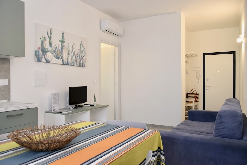 Bilocale direttamente sul mare, a breve distanza dal centro e dai principali servizi del paese. Posto al piano primo, composto da soggiorno con angolo cottura e divano letto matrimoniale, camera matrimoniale con balcone, bagno finestrato con doccia. Dotato di aria condizionata, tv, induzione, frigo con congelatore, pilozzino esterno e lavatrice. Posto auto. Di fronte alla palazzina possibilità di spiaggia libera e attrezzata (stabilimento balneare Florida). La distanza dal centro del paese e dal centro commerciale coop é di circa 400 metri. Questa è una soluzione Pet friendly: cortesemente Vi preghiamo di essere rispettosi degli arredi, di volervi dotare di teli divano se il vostro cane é abituato a salirvi, non arrecare disturbo ai vicini.