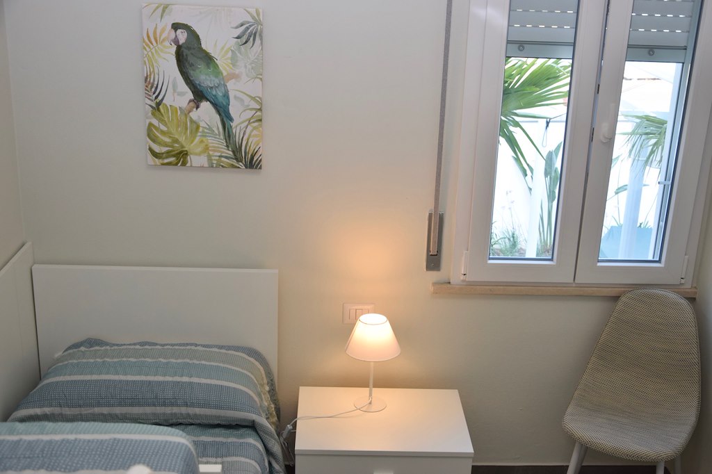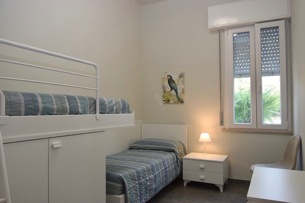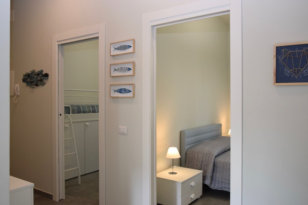 Nuovissimo trilocale 4 posti letto, in palazzina composta da due appartamenti, a pochi passi dalla spiaggia.La sistemazione é stata oggetto di recente ristrutturazione, offre zona giorno con cucina attrezzata, piccolo balcone con tavolo da colazione, camera matrimoniale, camerina con due letti singoli a ponte, bagno con box doccia ed area esterna privata recintata, con gazebo, tavolo e barbecue.Ottimamente arredato, l’appartamento é dotato di fornelli a induzione, forno elettrico, frigo con congelatore, lavatrice, tv,wifi, aria condizionata e phon.Incluso nella locazione un completo spiaggia presso stabilimento balneare La Lanterna a 150 metri.La distanza dal centro e dai servizi é di 500 metri.Questa è una soluzione Pet friendly: cortesemente Vi preghiamo di essere rispettosi degli arredi, di volervi dotare di teli divano se il vostro cane é abituato a salirvi, lasciare pulito il giardino e non arrecare disturbo ai vicini.